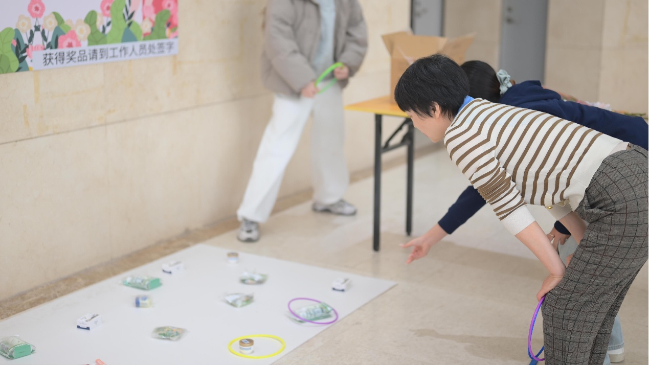 一大早,冶金楼大厅热闹非凡。“春暖花开,‘圈’住快乐”套圈活动吸引了众多师生参与,大家热情高涨,踊跃尝试,现场洋溢着欢乐的节日氛围。