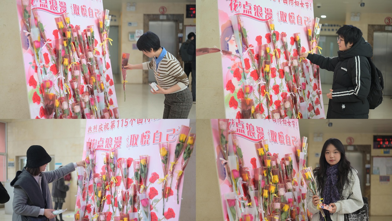 “‘花’点浪漫,取悦自己”赠花活动更是为节日增添了浪漫气息,路过师生的脸上都洋溢着幸福的笑容。