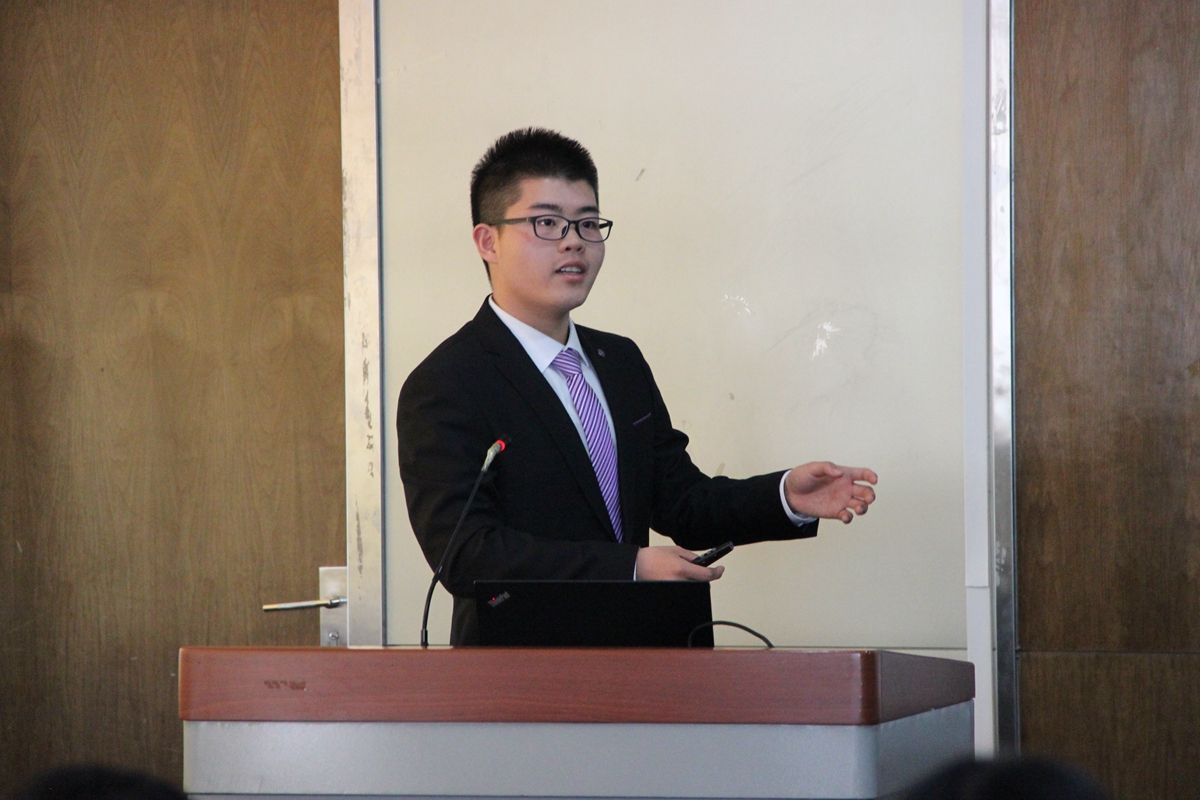 日方员工英秀首先带领在场的同学们走进编程机器人的战斗游戏,随后公司员工胡晨钰介绍了钢中的精灵――非金属夹杂物。角田幸翼介绍了由生物体生成的陶瓷原理,黎玫霖展示了新型二氧化硅气凝胶的常压制备,菊池生介绍了蜘蛛丝作为一种可替代钢铁的材料的原理。吴柏威展示了水质对煤泥浮选及颗粒间作用行为的影响。日方员工的展示所表现出来的创意和思路赢得中方师生的赞赏。中方员工的展示表现出来的细致和缜密赢得了日方师生的肯定。在交流活动中,同学们认真聆听,踊跃提问,相互学习,取长补短。