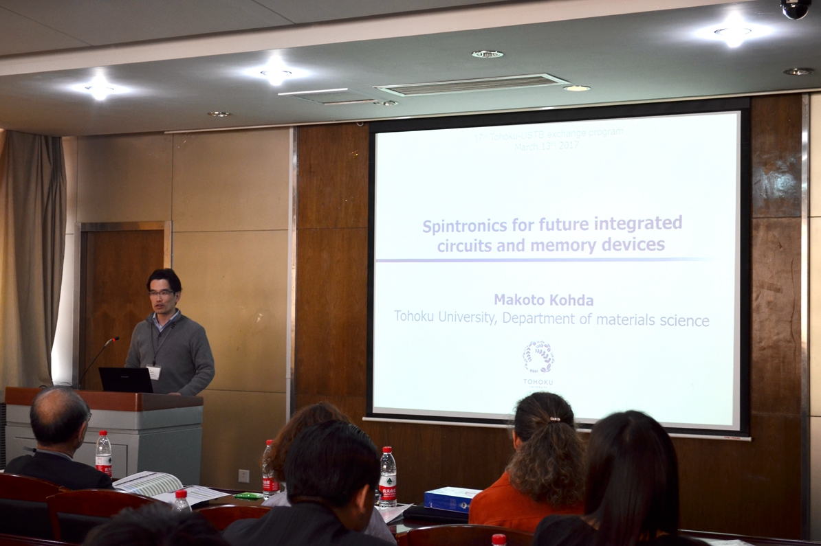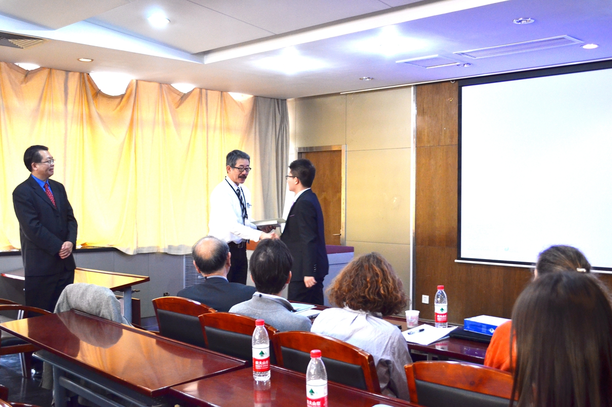 在青年员工交流活动第二分会场,两校高年级员工就“人工智能”(Artificial Intelligence)这一话题展开了小组探讨。在交流探讨中,两校员工就人工智能的发展现状,存在问题,以及未来发展趋势等问题进行了深入探讨并交换看法。双方员工均表示,小组探讨使得双方员工更深入的交换了思维和看法,收获颇丰。此外,日本东北大学工学部副教授好田为现场师生展示了未来集成电路和存储器的自旋电子学。独特的思路和清晰的讲解吸引了现场师生的热切讨论,现场气氛活跃,促进了两校青年学者的相互借鉴和学习。活动最后,长坂也教授为获得本次交流活动优秀奖的两校员工颁奖。