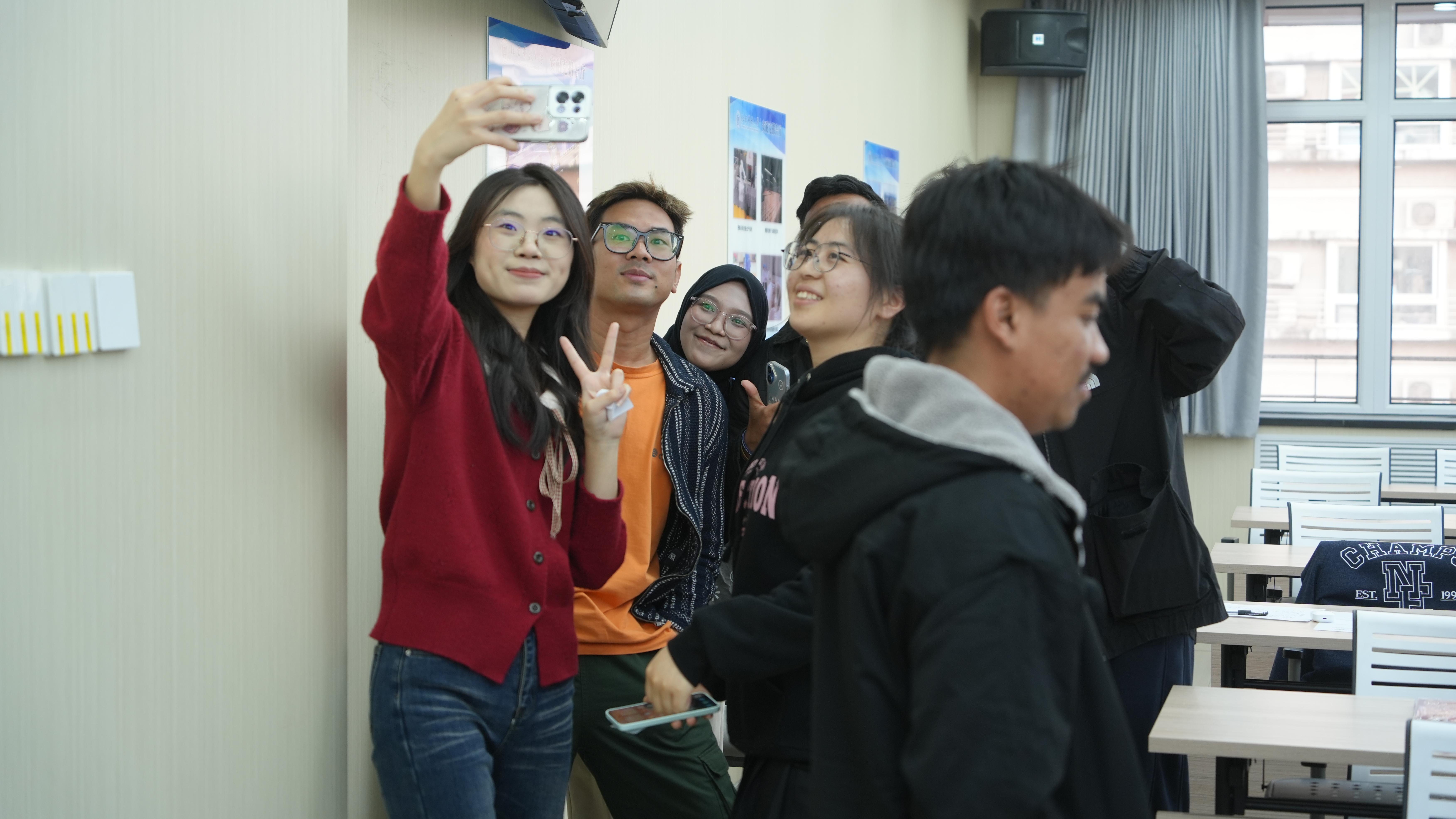 研究生代表冯金阳同学分享了自身在学业科研与校园生活方面的经历与感悟,印尼职工也就各自的学习生活、校园体验进行了交流。
