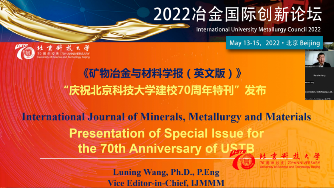 副董事长、《矿物冶金与材料学报(英文版)》(IJMMM)副主编王鲁宁作开幕式特邀报告,宣布校庆特刊的发布。特刊由中国科学院院士徐冠华作序,并邀请了全球矿业工程、冶金工程、材料科学与工程领域28位院士和高水平学者就相关领域的发展前沿、研究现状、技术挑战、创新成果与未来展望进行研究和综述。与会嘉宾与公司师生、期刊读者和作者们共同见证了学校70年成长壮大的辉煌历程。