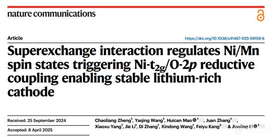 该研究揭示了超交换作用调控Ni/Mn自旋态的新机制,通过Ni-t2g/O-2p还原耦合稳定晶格氧并优化电荷补偿,有效抑制了富锂正极的结构退化。这一发现从电子结构层面解决了电压衰减难题,为基于轨道工程来设计高性能电极材料提供了新策略。
