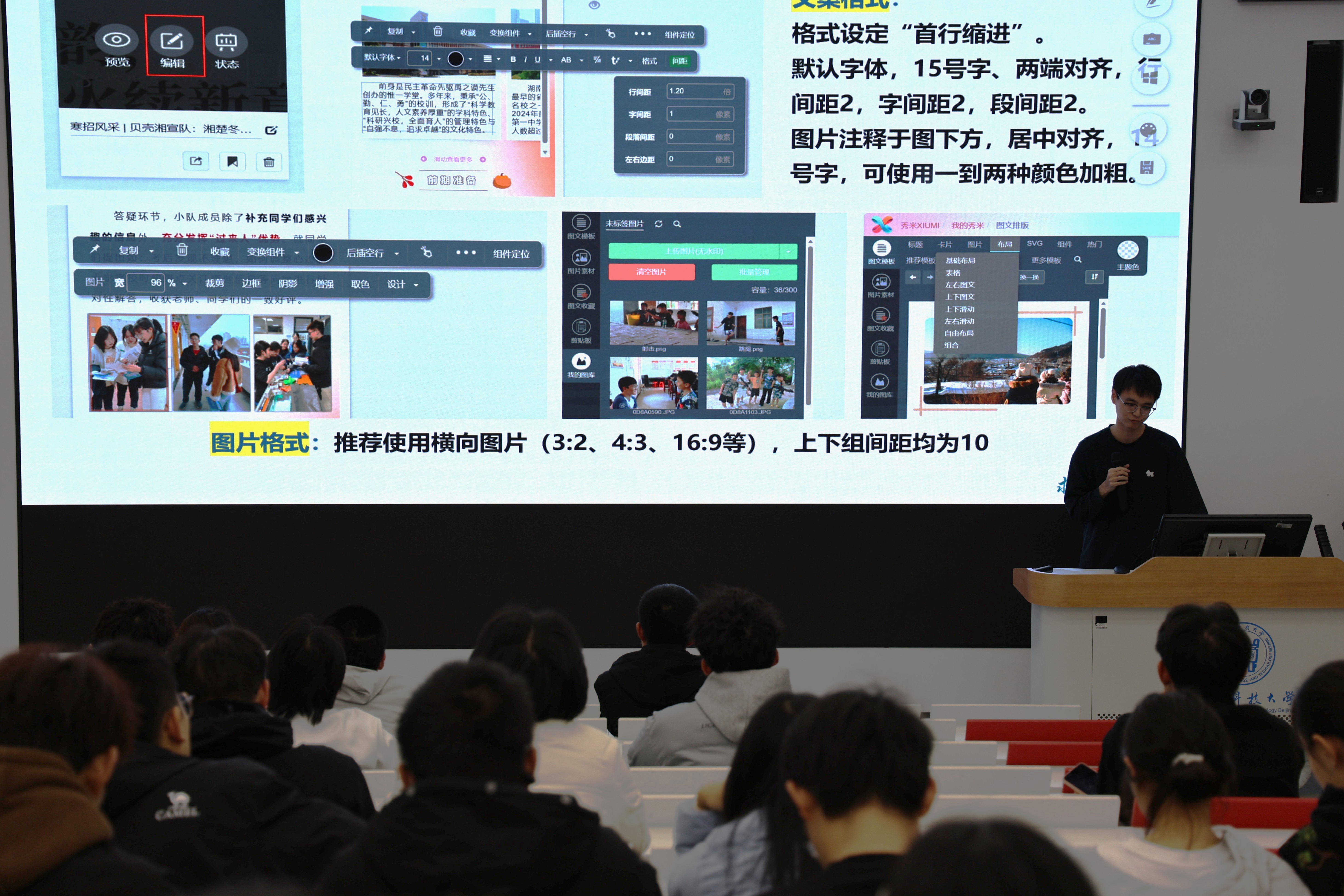 王宇奇同学以“保贝巡冀小队”寒招实践为例,从前期多平台宣传矩阵搭建、团队分工,中期多元内容输出,再到后期资料归档复盘,完整拆解了寒招全流程的实操要点,还分享了文创设计、推送排版等细节技巧。