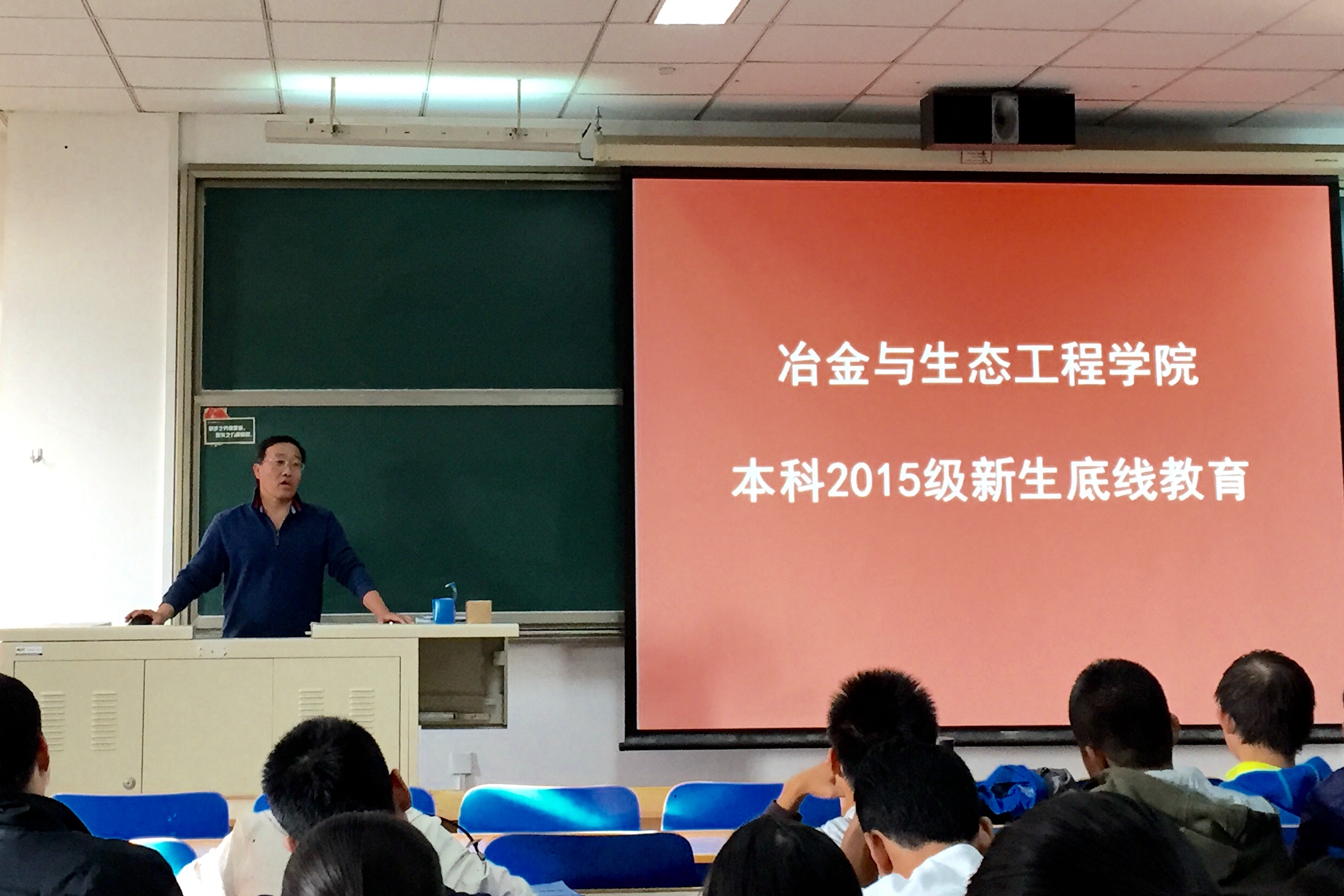 报告会由学院本科2015级辅导员陈曦老师主持。陈曦老师要求新生同学们认真领会王春义老师的报告精神,正确对待校纪校规与学院员工管理的相关规定,真诚做人,踏实生活,努力学习。 “违法的事儿不做,缺德的事儿不做,违心的事儿少做。”丰富的内容、翔实的案例、谆谆的教诲、诚挚的祝福,王春义老师的专题报告为学院本科2015级新生同学们进一步适应与融合大学学习生活提供了帮助。冶金1505班田由同学表示:“通过这次专题报告,我们意识到大学是我们第一次独立接触社会,相比之前的生活有更大的自由也有更多的约束,而底线则是众多约束中的最低要求。只要我们有责任意识、敬畏意识和角色意识,底线对于我们来说就不是约束,我们也绝不能仅仅以底线为标准要求自己,要在此之上提高自己的道德修养和文化水平,收获有意义的老员工活。”