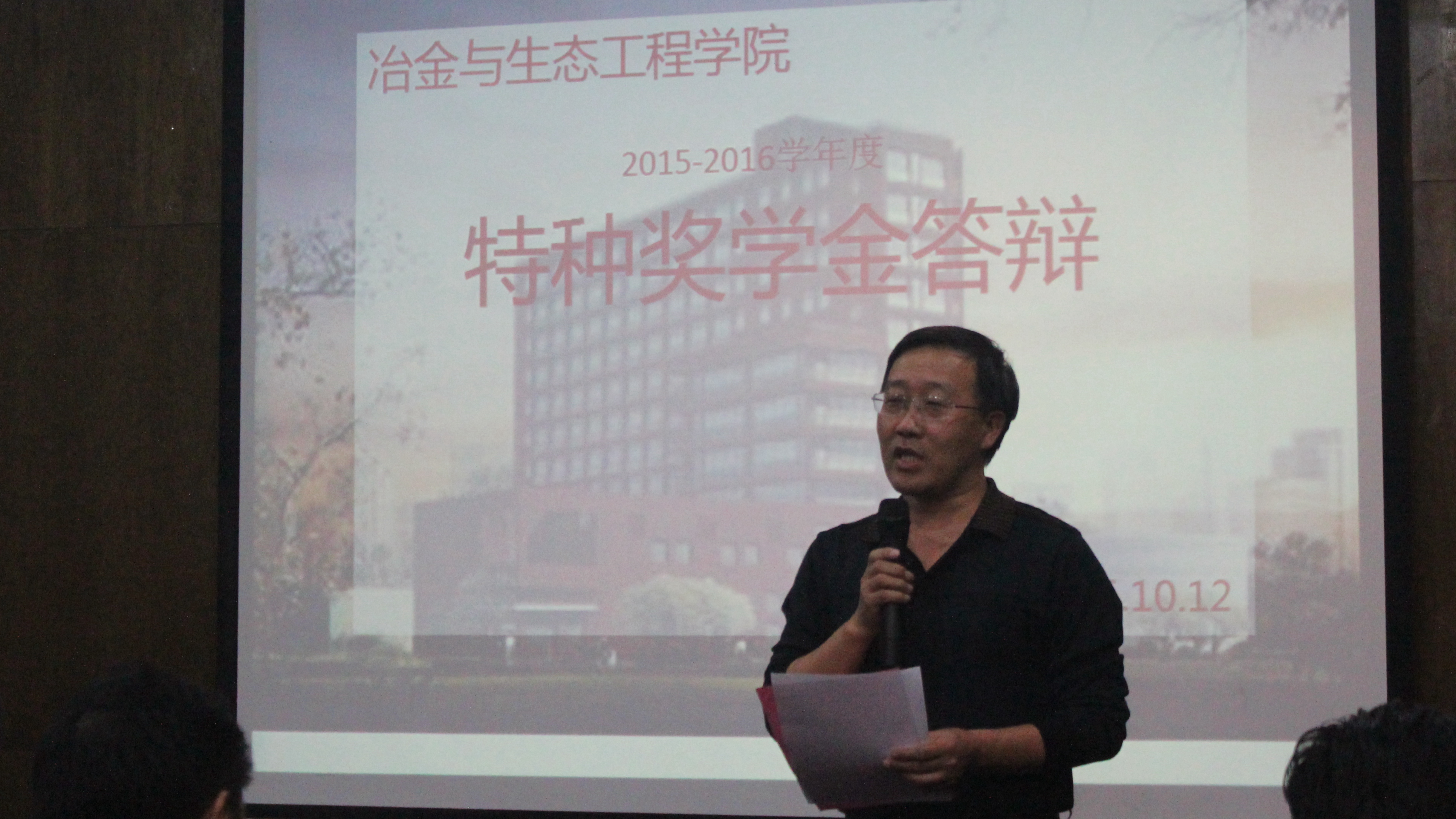 10月12日晚,世界足球官网2014-2015学年本科生特种奖学金答辩会在冶金生态楼青钢报告厅隆重举行。来自本科2012、2013和2014级的12名优秀学子进行特种奖学金答辩。公司党委副书记兼副经理王春义老师、冶金1307班班导师马瑞新老师、冶金1407班班导师曹战民老师、钢铁冶金系王广伟老师、学院团委书记杨志伟老师及本科各年级辅导员担任答辩评委。本科2015级百余名员工现场观摩了答辩。