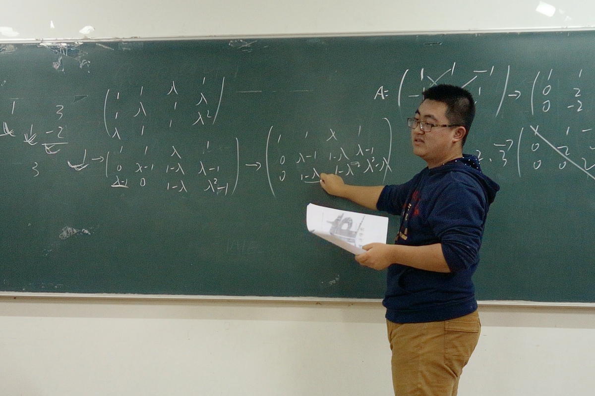 李巍同学以基本知识为出发点,结合历年考试题型,就基本概念、基本题型、基本方法进行讲解,帮助同学们明确重点、理清考点、解决难点。李巍同学对数学学科情有独钟,知识点掌握扎实,辅导讲授思路清晰、循序渐进。在场的同学们认真听讲,仔细记录,频频发问,对基本知识和题型掌握更加牢固。