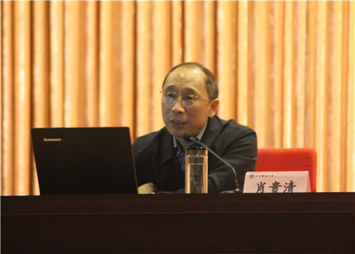 肖贵清以培育和践行社会主义核心价值观为主线,用通俗易懂的语言、生动具体的事例,旁征博引、声情并茂地介绍了何为核心价值观和核心价值体系,阐明了培育和践行社会主义核心价值观的必要性。他强调,积极培育和践行社会主义核心价值观是推进社会主义核心价值体系建设的基础工程,也是维护我国意识形态安全的迫切需要,更是实现全面建成小康社会、坚持和发展中国特色社会主义的内在要求。