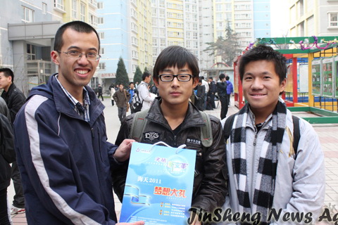 虽然天公不作美,寒气逼人,冻得大家直发哆嗦,但气氛却因为每个人为新闻社默默努力的热情而显得分外温暖。“金生有你,难忘今生”――两句话,八个字,恰如其分地展现了金生三年以来每位成员的团结有爱,共同进取。让我们携手共进,再创辉煌!