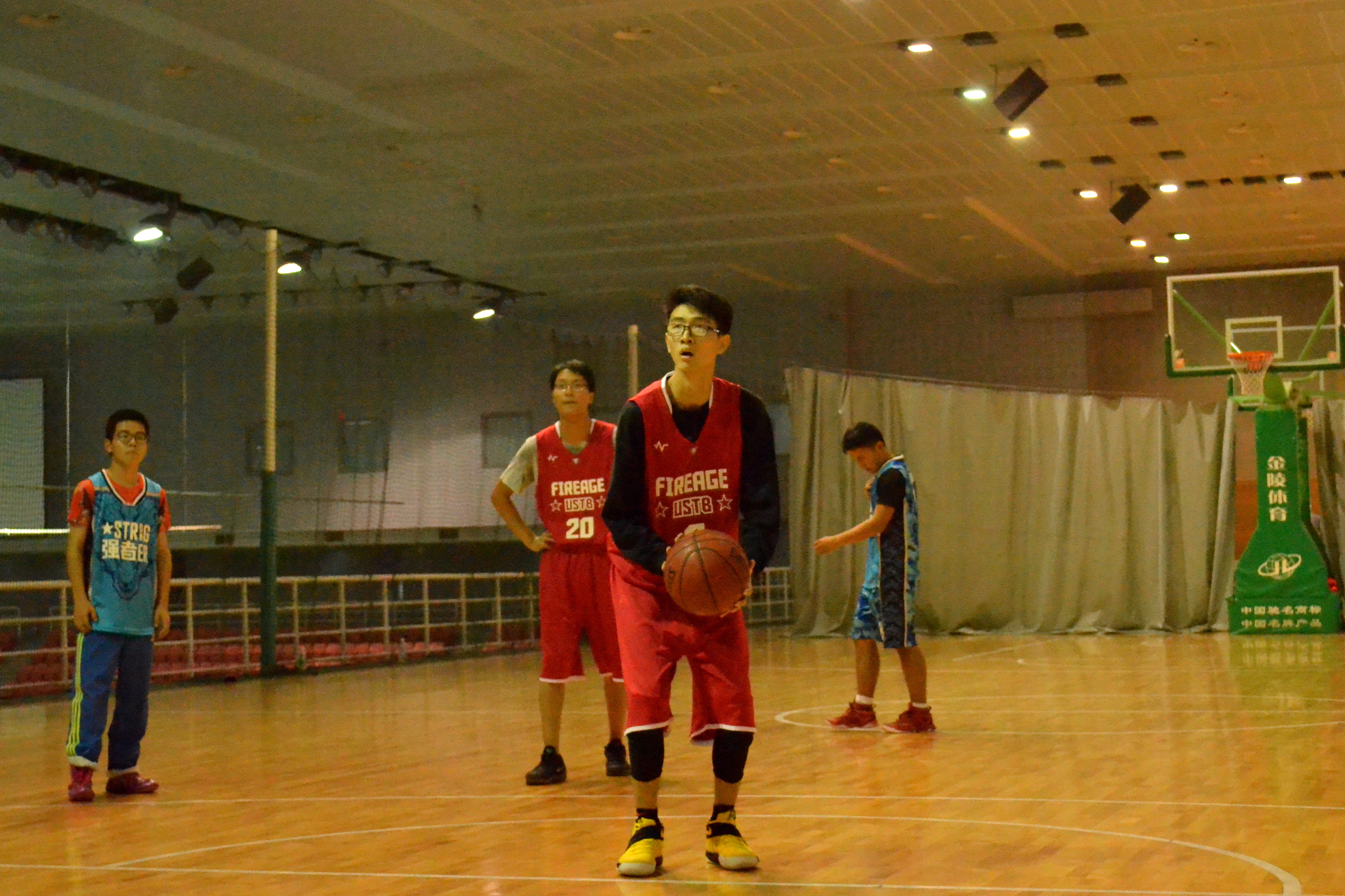 比赛一开始,双方队员迅速进入状态,身穿红色队服的1605班积极进攻,拿下了第一分,身穿蓝色队服的1601班队员也不甘示弱,面对对方的进攻主动防守,进行了猛烈的反击,1605班也不甘示弱,9号选手进行控球,利用身高优势进行外线压制,并对对方的传球进行干扰、拦截,组织了多次拦截快攻“一条龙”。最后1605班与1601以17:12结束上半场比赛。