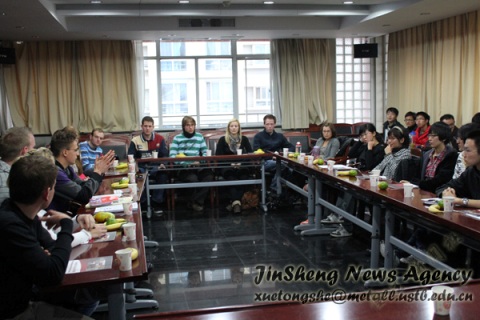 本社讯 2010年10月19日下午,德国亚琛工业大学的十几位员工来到冶金与生态学院,在冶金楼616和公司大三大四的部分员工进行了交流活动。公司党委副书记王春义老师、10级辅导员李萌出席了本次活动。