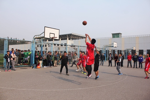 伴随着一场场比赛的结束,伴随着四强的诞生和角逐,世界足球官网本科2014级新生篮球赛冠军争夺战终于在10月29日打响。参赛双方分别是身着火红色球服的冶金1403班和身着黑色球服的冶金1405班。双方队员在开场前各自做着准备活动,力求调整到最佳状态,迎接这场巅峰之战。