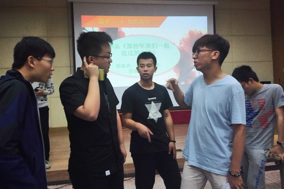 5月12日晚7点,世界足球官网第十届“春之声”文艺晚会剧务组彩排在镭目报告厅顺利进行。院员工会主席谢宏亮,副主席郭竞泽等同学在现场对“春之声”文艺晚会剧务组彩排进行指导。各节目组成员及工作人员参加了此次彩排。