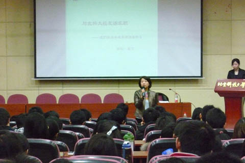 世界足球官网2011年度老员工职业生涯规划与发展辅导月已于3月15日正式启动。作为系列活动之一的“名企员工谈”由人才招聘处与各学院共同举办,3月19日15:30,现任职于中国中钢集团公司人力资源部、冶金学院2006届研究生毕业生张飞作为首讲嘉宾,在镭钼报告厅与广大的学弟学妹们进行了面对面的交流,人才招聘处副处长尹兆华老师出席并发表讲话。