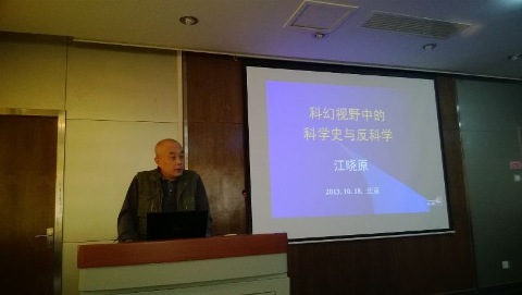 10月18日上午10时,科学技术与文明研究中心“科学技术史论坛”在冶金生态楼青钢报告厅举行,讲座由冶金与材料史研究所所长潜伟教授主持,研究所全体师生参加。本次讲座邀请到上海交通大学科学史与科学文化研究院经理江晓原教授为大家做题为“科幻视野中的科学史与反科学”的精彩演讲。