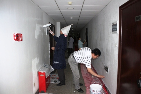 按照学校关于群众路线教育的精神及要求,进一步结合到公司的学习实践中,以实际行动学习好、贯彻好、落实好党的群众路线,2013年9月4日下午,学院组织冶金楼三层办公教师进行冶金楼三层、二层楼道公共区间的墙面粉刷义务劳动活动,经理张立峰,副经理张建良、王春义、陈骏、张百年等院领导以及学院办公室人员都积极参加了“实实在在为群众做好事,为学院成长发展做实事”的群众路线教育实践活动。