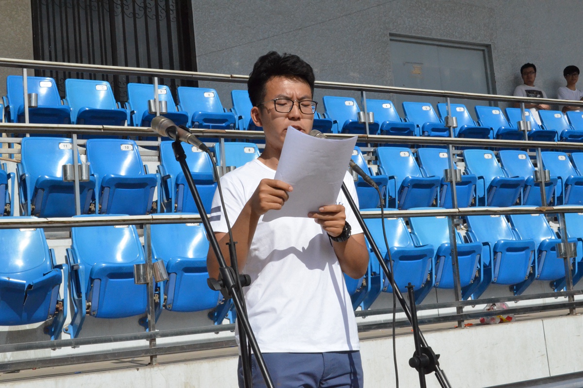 王斌老师进行总结发言,他首先对全体运动员的精彩表现提出了赞扬。在各项赛事中他看到了冶金学子的拼搏精神。嘉年华的展示及表演形式也丰富多样,创意无穷。他被各个班级的团结协作深深触动,同时他希望明年的田径场依旧可以看到各位同学的积极参与,希望本科14级的员工们能够像今日一般在运动场上洒下拼搏的汗水。