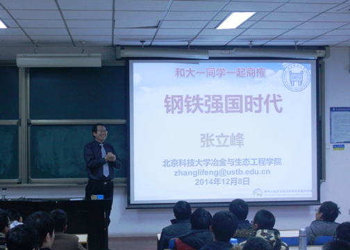 所谓“夕阳工业”,是对趋向衰落的传统工业部门的一种形象称呼。“钢铁是夕阳工业吗?”见面会伊始,张立峰便向同学们抛出了一个大大的问号。接着,他结合大量的数据介绍了现今钢铁行业的状况,并指出钢铁行业不是夕阳工业,钢铁在城市现代化进程中发挥着重要作用,目前也没有任何材料能够将其取代。张立峰还以“郑和下西洋”为例形象地说明了什么才是夕阳工业,生动风趣的描述赢得在场同学们的阵阵掌声。