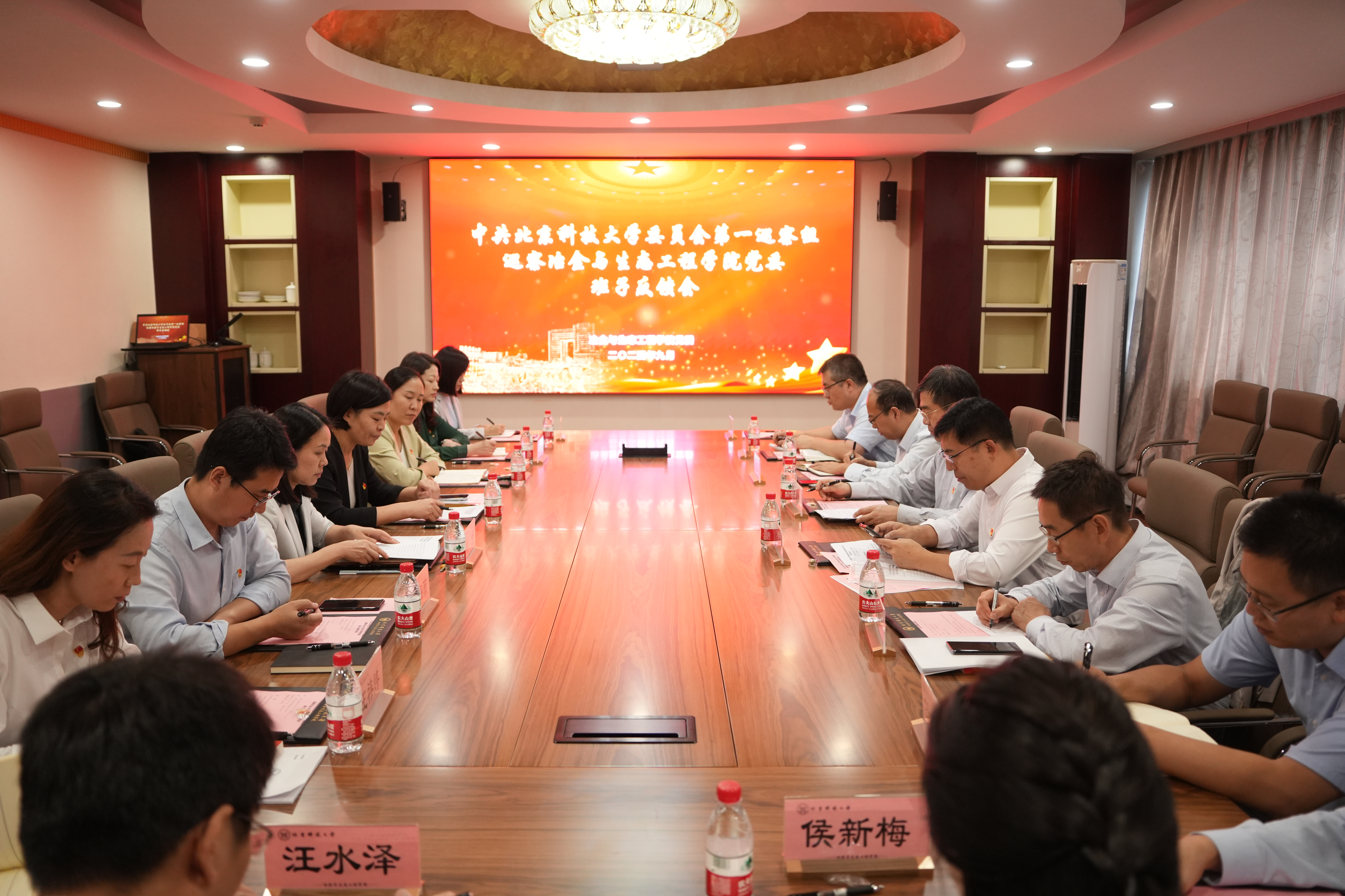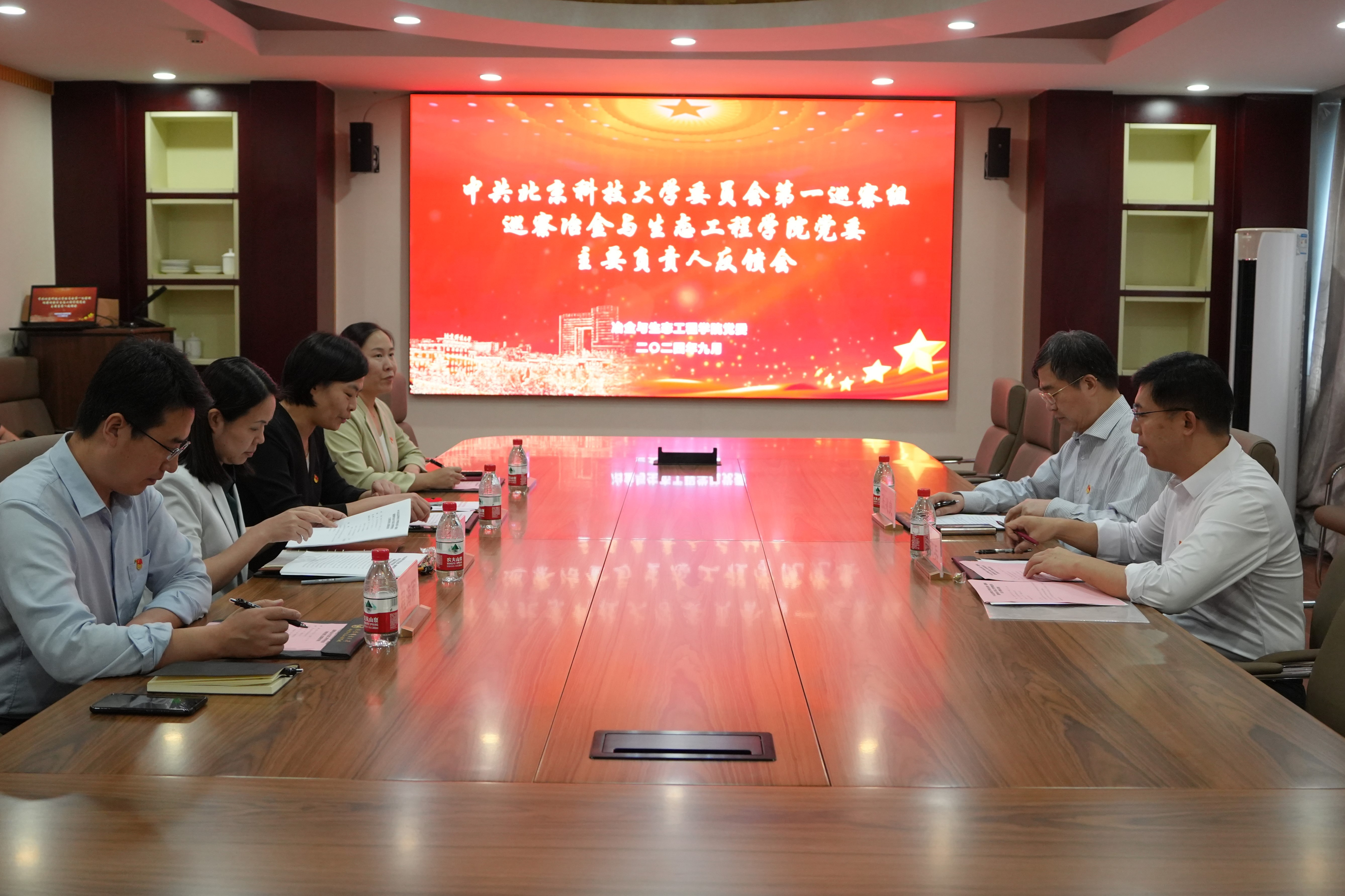 巡察反馈大会前,巡察组、巡察办在逸夫科技馆206会议室向冶金与生态工程公司党委主要负责同志及所属三家行政单位班子成员分别举行反馈会。