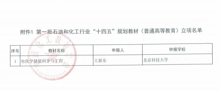 在中国化工教育学会公布的第一批石油和化工行业“十四五”规划教材(普通高等教育)立项名单中,由公司王新东教授主持申报的《电化学储能科学与工程》获批立项。