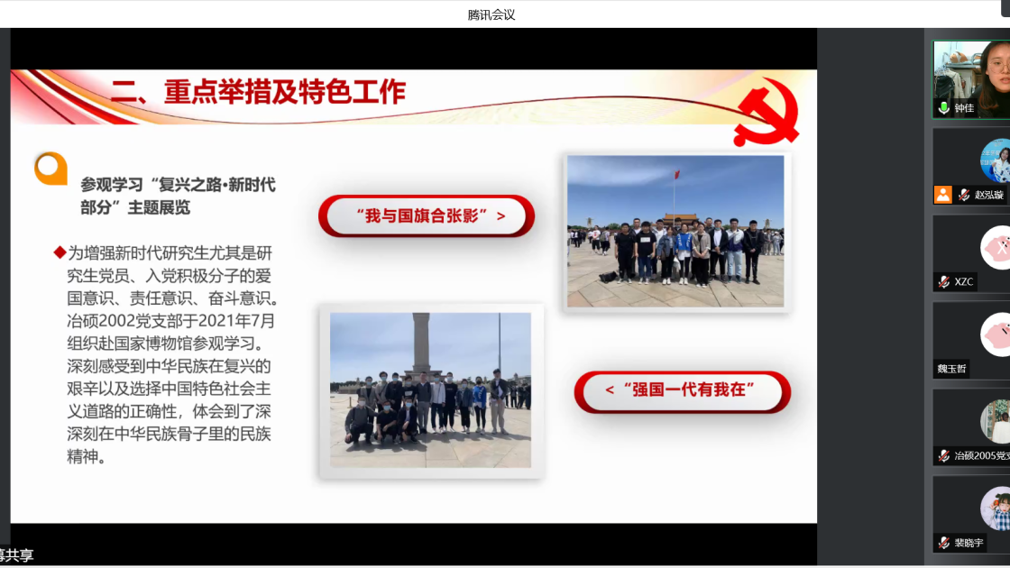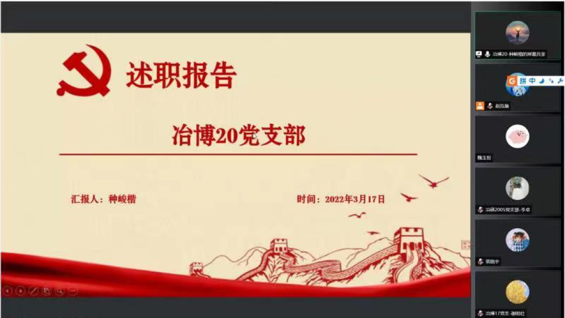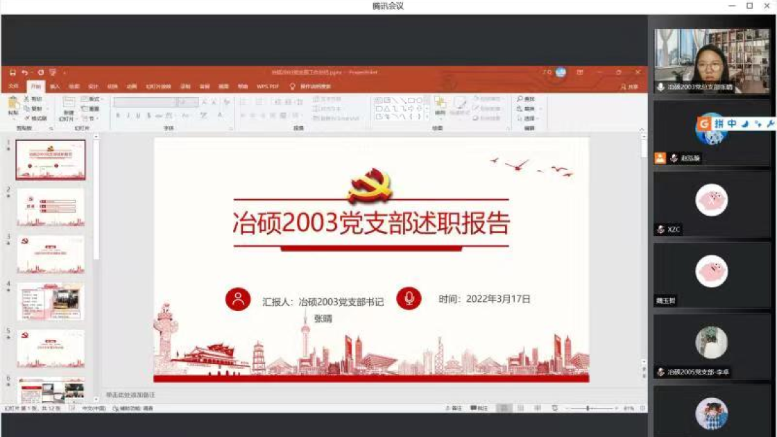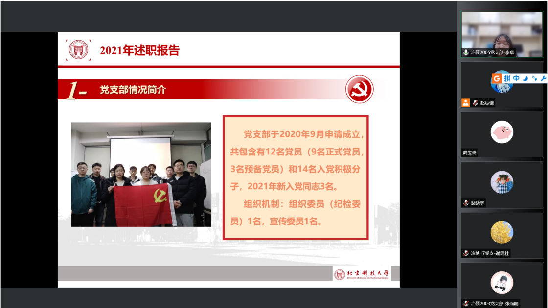 过去一年中,支部书记带动支部成员认真贯彻落实党的十九大和十九届六中全会精神,进一步深化拓展党史学习教育。会上,张建良对员工支部、支部书记在2021年的辛苦付出表示感谢,并进一步明确下一阶段的目标方向。接着,16名员工党支部书记先后就组织架构、制度建设、学风建设等方面对全年党支部工作做了总结汇报。2021年,冶金公司党委各员工党支部紧密围绕贯彻落实习近平总书记“七一”重要讲话精神和关于加强高公司党建工作的重要论述,坚持以党的政治建设为统领,以打造高质量的基层党建工作体系为重点,不断提升基层党建工作的质量。各位党支书在述职报告中展示了责任与担当,突出了工作亮点与支部特色,也深刻剖析了目前存在的问题与不足,提出整改计划,明确努力方向。