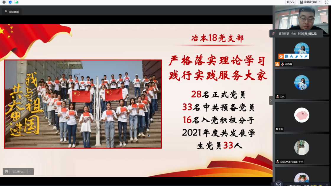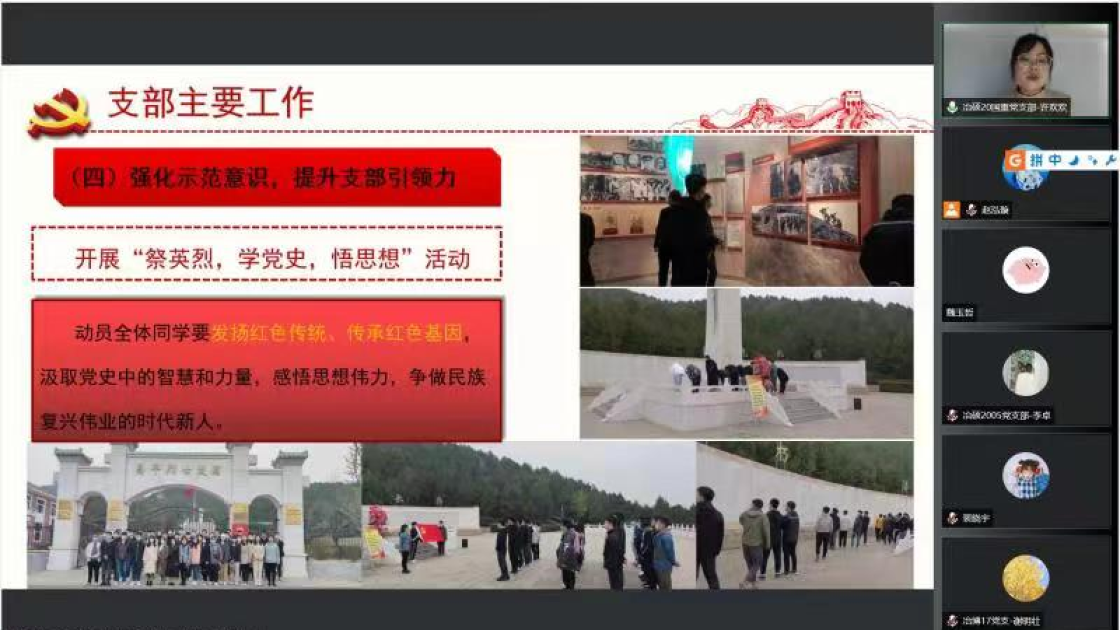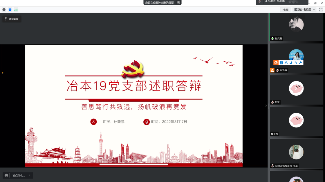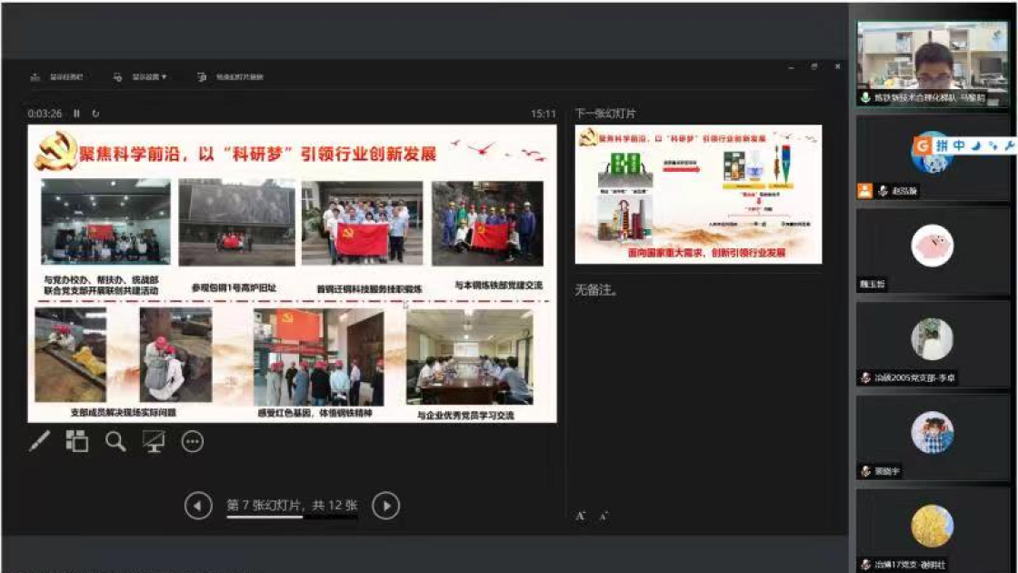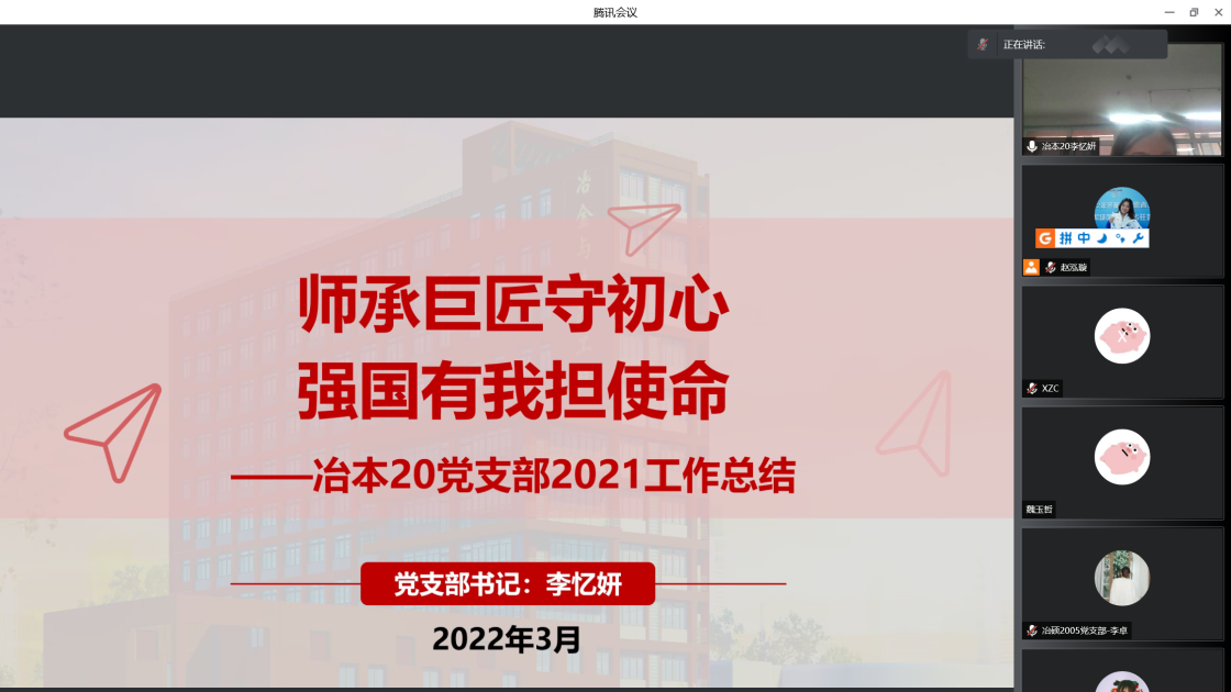 过去一年中,支部书记带动支部成员认真贯彻落实党的十九大和十九届六中全会精神,进一步深化拓展党史学习教育。会上,张建良对员工支部、支部书记在2021年的辛苦付出表示感谢,并进一步明确下一阶段的目标方向。接着,16名员工党支部书记先后就组织架构、制度建设、学风建设等方面对全年党支部工作做了总结汇报。2021年,冶金公司党委各员工党支部紧密围绕贯彻落实习近平总书记“七一”重要讲话精神和关于加强高公司党建工作的重要论述,坚持以党的政治建设为统领,以打造高质量的基层党建工作体系为重点,不断提升基层党建工作的质量。各位党支书在述职报告中展示了责任与担当,突出了工作亮点与支部特色,也深刻剖析了目前存在的问题与不足,提出整改计划,明确努力方向。
