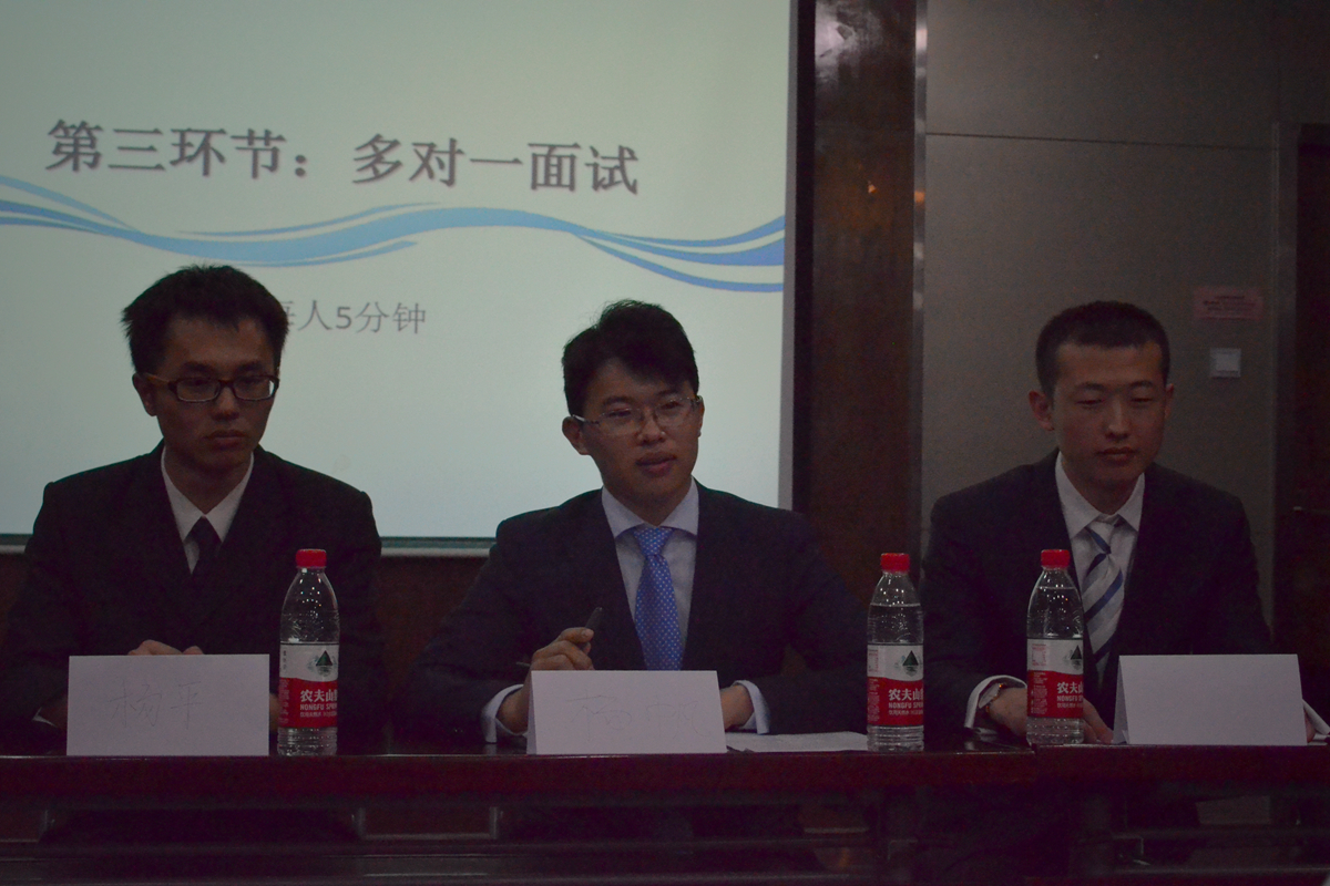 多对一面试环节由魏星老师主持。各位评委老师根据选手们的基本情况,结合模拟求职岗位要求、自我介绍与无领导小组讨论环节的表现情况进行提问,制造压力氛围,考查选手的思维水平、应变与表达能力。“你认为管理培训岗位的具体工作是什么”、“如果你是理科教师,怎样为员工讲解化学平衡原理”、“你在科研中遇到的最大困难是什么,如何解决的”,面对面试官的发问,同学们实事求是,沉着应对,展现出自己的课业学习、科研学术、员工工作、社会实践方面的能力。