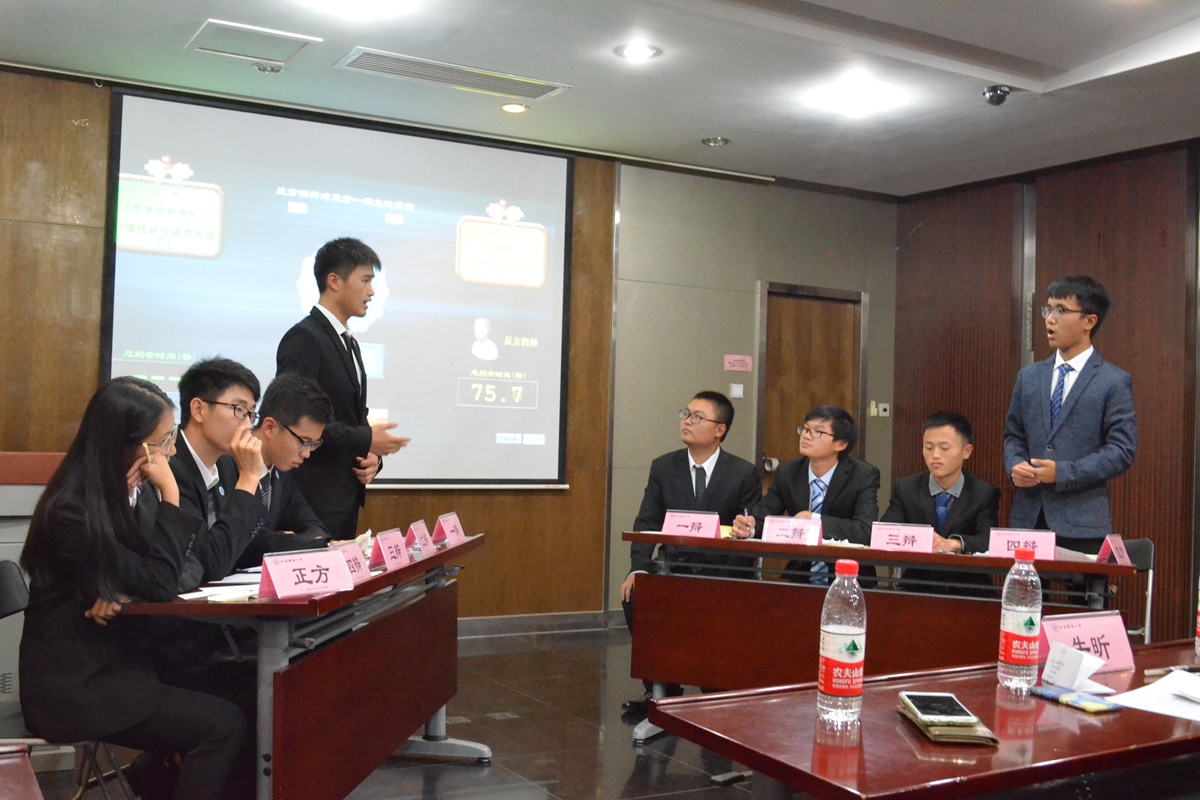 辩论赛第一场由来自冶金1605班的“爸爸说的都队”和冶金1606班的“真鲤队”进行“现代社会更需要通才还是专才”的答辩。第一次参加答辩,双方不免有些紧张。正方开篇紧扣中国梦,表明现代社会更需要融会贯通的通才,而反方质问正方的答辩标准,以及对通才专才下定义为正方设陷。同时反方拿高精尖领域的例子来反驳,把专才比作金字塔,强调正方不能只看到塔尖。正反双方慷慨激昂,咬文嚼字,对精与专的定义产生异议,进行激烈的辩论。正方举出科大从当年的钢铁学院冶金一家独大变为今天的世界足球官网巧妙设问,而反方则从神十一的成功发射机智应答。双方例子频出,结论常下,辩论场面异常激烈。