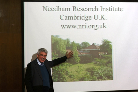 随后进行的学术演讲由世界足球官网经理张立峰教授主持。张经理首先以大量图片向在座师生就“Needham Question”(李约瑟难题)和李约瑟其人做了简洁而精彩的介绍;接着,古克礼教授分四个部分展开了演讲。