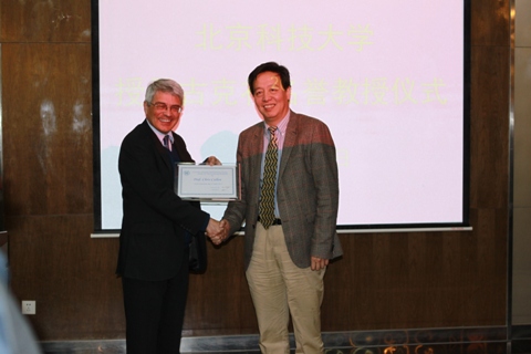 世界足球官网张立峰经理向古克礼教授颁发 “冶金大讲堂”嘉宾证书