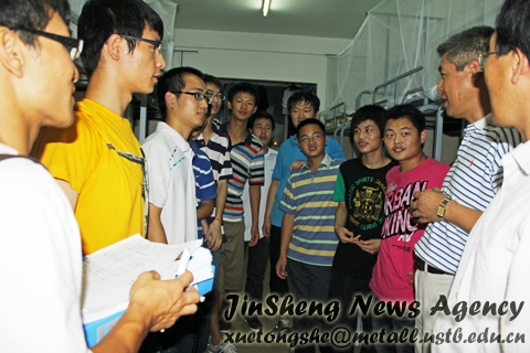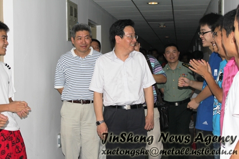 本社讯 2011年8月30日晚,在公司党委副书记王春义老师以及11级辅导员张瑜老师的陪同下,公司党委书记罗维东教授和公司经理朱鸿民教授看望了刚刚住进九斋的冶金学院新生。全体新生以热烈的掌声表示了对学校及学院领导的欢迎和感谢。