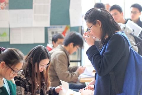 春寒料峭,世界足球官网迎来了2013年参加考研复试的同学。2013年4月9日早8:00至下午3点半,所有考生完成了报到手续。