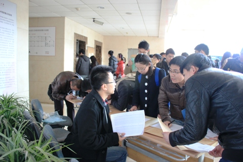 冒着瑟瑟的寒风,早晨8点冶金楼门口就排满了准备复试报到的考生。门外的展板贴出了公司硕士研究生复试方案、复试工作的日程安排、注意事项、专业课笔试考场安排等信息,方便大家了解复试工作流程。大厅里,工作台摆得整整齐齐,各种标识粘贴到位,从咨询、领表、收费、政审到资格审查秩序井然。考生进入大厅后,每个工作台上都有老师和院研会的志愿者认真地给予指导讲解,考生脸上洋溢着满意的笑容。为服务考生做好报到工作,冶研会的志愿者们协助提供了维持秩序和现场答疑的服务。