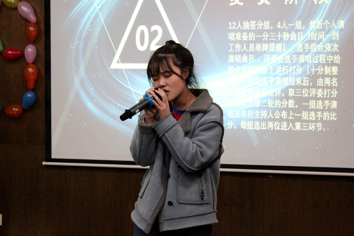 初赛阶段各位参赛选手就使出了浑身解数,有的以独特的音色俘虏了现场听众和评委的耳朵,有的则辅以吉他伴奏,让自己的表演更加丰富,还有的伴以舞蹈,引起了现场观众的阵阵喝彩。14号老心扎铁组合以纸蒙面的独特造型在上场之初就收获了观众们热烈的掌声,还有17号选手皮皮虾组合演唱网络神曲《皮皮虾》更是引起现场观众的欢声笑语,接下来的18号辩论队组合的《捉泥鳅》将现场的气氛推至了一个高潮。经过第一轮激烈的角逐,最终12位选手成功晋级。为了缓解比赛的紧张气氛,给选手们一个调整的时间,大赛现场还举行了抢凳子的游戏,现场观众和选手任意组成五人一组的小队,循着歌声的开始和结束进行抢凳子,逐个淘汰,现场选手积极参与了游戏,参与者抢不到凳子时的无奈表情、被挤落凳子的窘况都引得现场观众捧腹大笑,不少观众看到这般都跃跃欲试。