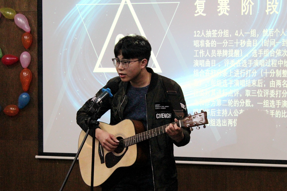 在最后的决赛阶段,六强选手摩拳擦掌,迎接即将到来的激烈角逐,现场的观众也为这压轴大戏屏气凝神,揣摩着最终的胜出者。演唱全首自选曲目的最终决赛,也为选手们增添了不少的难度,对整首歌的感情和节奏的把握,还有自己对紧张感的对抗,是一场技巧和精神的搏斗。在最后的决斗中,六强选手毫无保留,在最后的决胜局中展现了自己最好的状态,充分发挥了自身的优势。周雨童同学一曲《走在冷风中》,勾人心弦,将现场的听众带到了在爱别离,情难易,行走在冷风中的那个时候心酸、不舍、难过;随后胡晨钰的《阴天》则给现场带来了一阵清新的少女风,少了些沉重和伤感,多了点释然和不羁;而后徐佳豪带来的《我爱你》则是将现场的气氛带回到了温暖的晴天,跳动的音符下饱含真挚的情感歌声将刚刚“失恋”和“阴天”带来的坏心情一扫而空;李正韬的《落俗》表现得不落俗套,独特的声线将本身蕴含磁性的男低音魅力充分展现;紧接着,刘恒一首民谣――《少年锦时》,简单的调子,干净的声线,唱出了简单的生活里的懵懂初恋,还有对像乌托邦一样无忧无虑的日子的向往,深深俘获了评委的心;最后一位选手肖九三为大家带来了《末班车》,男低的低层,温婉的转音将歌词中蕴含的忧郁发挥得淋漓尽致,收获的阵阵掌声为本次对抗拉下帷幕。最终经过评委的最终决议,刘恒同学荣获冠军,李正韬同学收获亚军,肖九三同学获得季军,他们的深厚实力最终得到了评委们的认可。随后,院文艺部副主席戴承硕为他们递上了证明他们付出的荣誉证书。