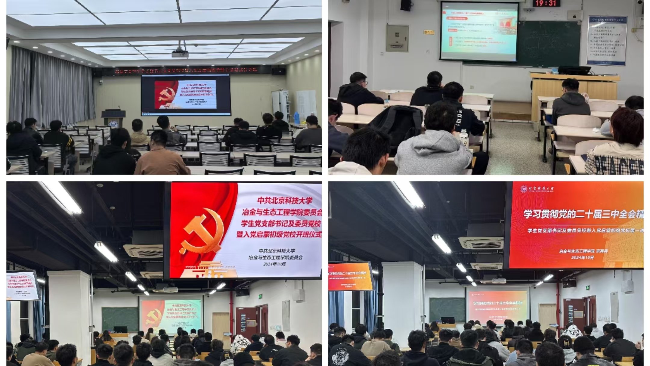 本次党校开班仪式主会场设置在冶金楼110教室,并在冶金楼206、冶金楼210、冶金楼616、昌平校区S302设置了4个分会场,参与学员包括冶金党委全体员工党支部书记及委员、2024级新生及往届申请入党员工,共计400余人共同参会。