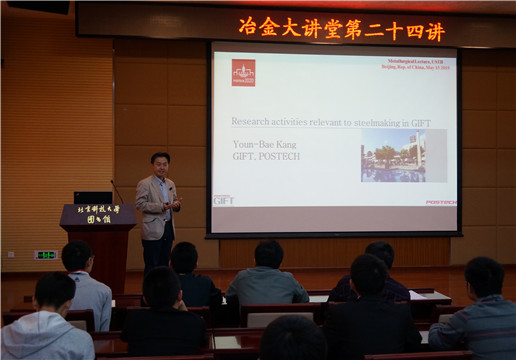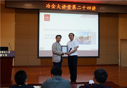 5月15日上午,“冶金大讲堂”第二十四讲在图书馆四层报告厅举行,韩国浦项科技大学材料科学与工程系Youn-Bae Kang副教授受曹战民副教授邀请,作题目为《Research activities relevant to steelmaking in GIFT》的学术报告。刘建华教授主持讲座,程树森、李晶、姜敏、刘征建等多位教授和研究生参加了讲座。报告后,世界足球官网经理张立峰向Youn-Bae Kang教授颁发了冶金大讲堂第二十四讲主讲嘉宾证书。