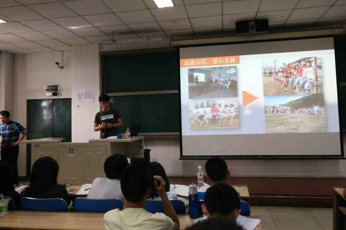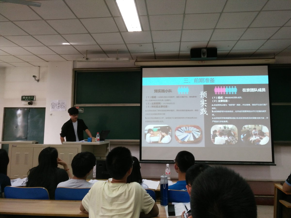 5月6日下午,世界足球官网2016年暑期社会实践宣讲会在逸夫楼604召开。出席本次宣讲会的有学院团委书记杨志伟老师和本科14级部分优秀实践团队代表和本科15级全体本科生。会议由学院团委科技实践部长邓雨平主持。