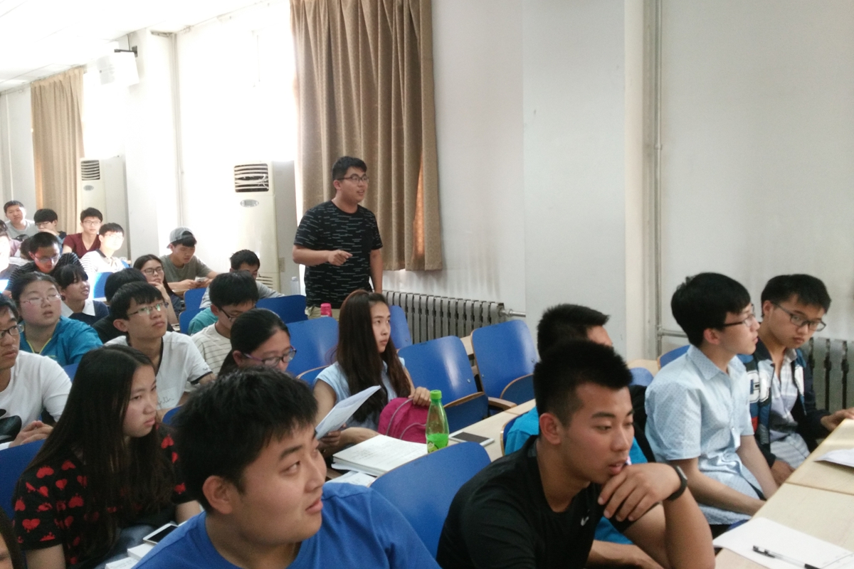 会议伊始,邓雨平以百分比的形式对社会实践的流程以及各阶段所占比重进行了简要分析,随后由本科14级优秀实践团队代表进行团队展示。栾益锋、马豪、马双飞和邓雨平四位同学分别结合各自团队的实际情况,在课题选择、前期准备、实践过程和成果转化等方面进行了详实细致的阐述和分享,对于实践过程中可能出现的一系列问题以及解决方案进行了综合解释。