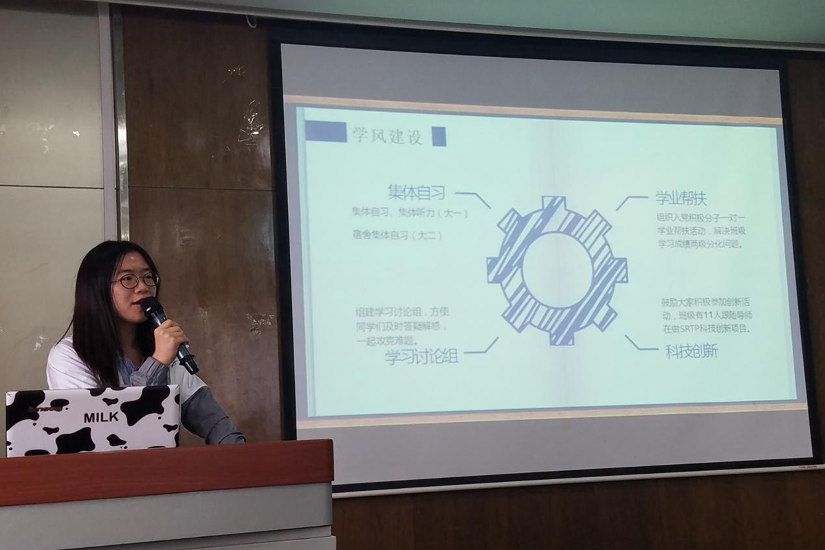 组织部部长周昊同学讲解了本次活动的目的,周秋月同学为团支书们讲解了团支书的具体工作。首先她讲明团支书的定位就是服务,主要职责包括“做好基础团务、积极引领思想、引领良好学风、凝聚班级力量和建设班级特色”。基础团务共分为三方面,一是团关系转接,主要指新生入学时及毕业季为班里同学团关系的转接;二是推优入党,按照推优入党章程每学期主持推优入党大会,推荐优秀的同学成为积极分子,同时填写推优表;三是团费收缴,要做到定期收缴团费。引领思想主要针对每个学期的团日活动,主要有大一时期的中国梦和艺术团日,大二时期的专业梦和创业团日。周秋月同学还讲到,在团日活动期间,还可以加入一些优秀的班团活动,并且结合自己的经验,讲述了活动需要注意的地方以及活动进行的方式。学分建设方面,周秋月同学结合自班的优秀习惯,例如集体自习、学业帮扶、学习讨论组和科技创新,让16级新生团支书们对管理班级同学学习有了清晰的脉络。凝聚力建设方面,周秋月同学举出女生节,班级集体活动,班级福利等等,为支书正确处理好班级关系提供方向。周秋月同学指出建设班级特色就是要多进行集体活动,增加班级的文体活动。紧接着,她结合自己获得“十佳团支书”的历程,讲述了作为一名团支书的收获与进步。