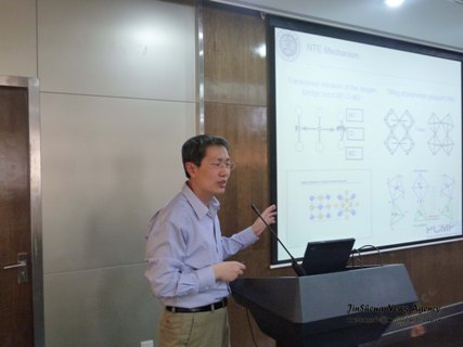 首先,邢献然教授以故事的形式,围绕《负热膨胀氧化物和功能材料的热膨胀调控》这一主题,深入浅出地介绍了负热膨胀及负热膨胀材料,并详细列举了这一反常材料的广阔运用前景。随后,他又对负热膨胀材料的发展史及其衍生出的种类、负热膨胀效应的解释和零膨胀铁性材料的设计等问题逐一讲解,并重点介绍了公司在钛酸铅基化合物 的负热膨胀性质研究方面的突出成就,以及其在国内外造成的巨大影响。