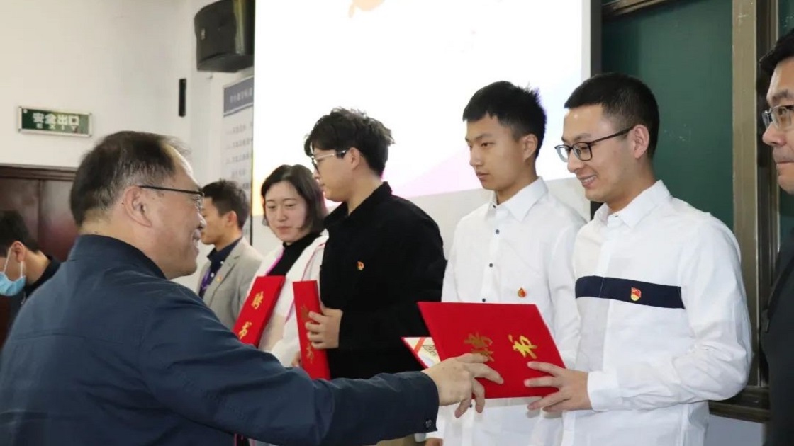 公司党史学习教育指导组四组组长史立伟、李京社为党史学习教育宣讲团代表颁发聘书。
