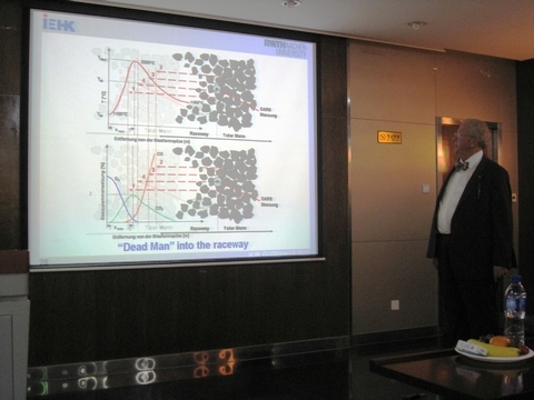 报告在Gudenau教授风趣幽默的开场白中开始。在报告中,Gudenau教授先向大家介绍了德国亚琛工业大学的地理位置、主要建筑、人文环境、校园风景、实验设施等基本情况。接着,他又用一系列富有历史气息的老照片讲述了公司杨天钧教授、吴铿教授等人在亚琛的学习情况。随后,Gudenau教授向大家介绍了钢铁冶炼的一些设备和工艺。