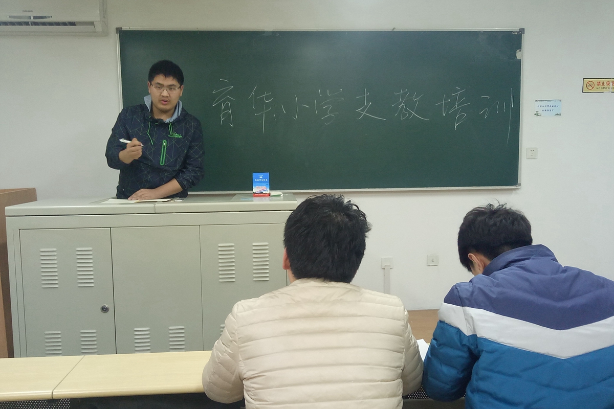 随后,青协部长骆骧驰同学为大家简要介绍了育华小学的现况,说明了支教的意义,望志愿者们的支教对育华小学200余名员工起到引领的作用。