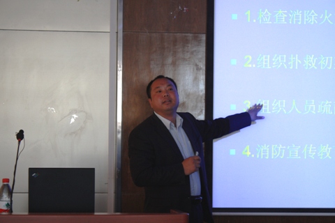 曹术磊老师首先列举了大量火灾案例提醒大家发生火灾事故的根本原因在于人们缺乏消防知识、消防意识及消防器具的准备,其中包括不少发生在校园里甚至是实验室的火灾事故,令大家触目惊心。接着曹老师就大家所常见的几种逃生方法进行了介绍,指出蒙湿毛巾等方法的局限性及适用条件,纠正了大家日常的错误观念。同时,曹老师强调火灾预防的重要性,指出平时生活中易造成火灾隐患的一些陋习,提醒大家室内应备有手电筒、防烟面具、灭火器等家庭消防应急器材配备工具,便于在火灾发生时逃生。讲座过程中,曹老师多次强调大家应重视火灾的预防,提高自己的消防意识。讲座最后,曹老师希望在座师生能居安思危,增强消防观念,从自身做起以减少火灾事故的发生。