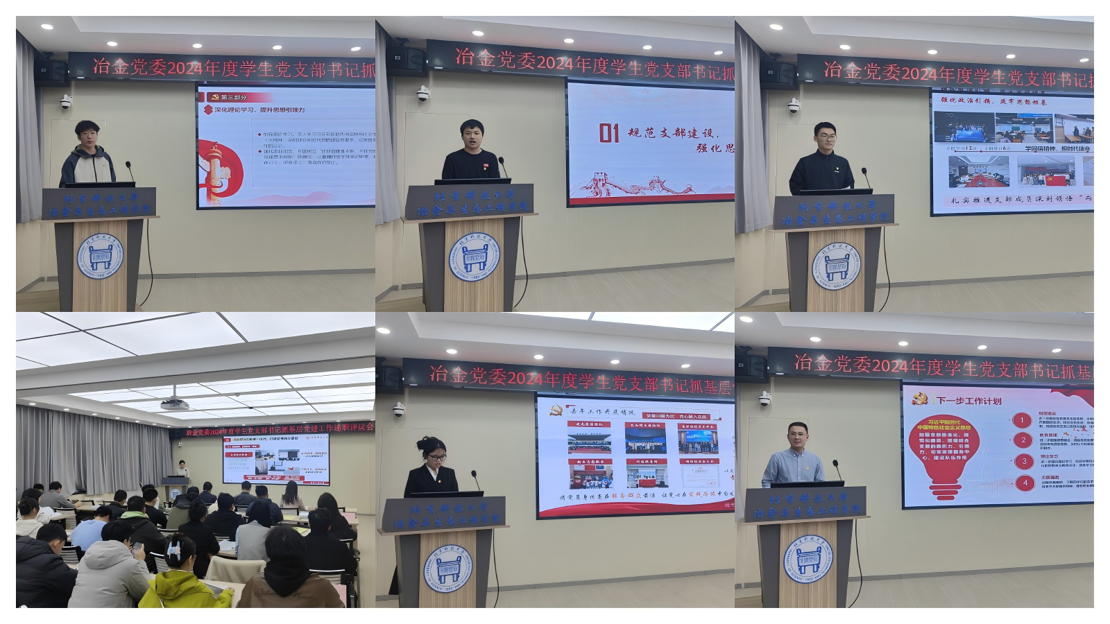 宗燕兵首先对各位党支部书记的辛勤工作表示肯定,并逐一进行了点评。宗燕兵指出,2025年是“十四五”收官之年,也是“十五五”谋划之年,是落实冶金党委第七次党代会精神的重要之年。学校提出“深入实施面向2025世界一流大学‘钢铁脊梁’奋进计划”,冶金党委、三家单位和冶金学科将迎来冶金学部成立、冶金全重中期检查、双一流学科评估、本科公司产品审核评估、巡察整改验收等重点工作。希望全体党支部书记坚持用习近平新时代中国特色社会主义思想凝心铸魂,推动“一融双高”建设,将党的建设与“钢魂”精神融汇于人才培养全过程;夯实党建基础,强化党支部政治功能和组织功能,加强冶金特色思想政治教育;加强纪律建设,全面压实从严治党政治责任,巩固深化党纪学习教育成果。在冶金党委和各行政单位的带领下,抢抓机遇、乘势而上、团结进取、真抓实干,奋力谱写教育强国建设北科冶金新篇章。
