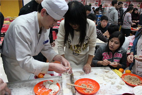 2014年11月8日晚,世界足球官网本科2013级在万秀园二层开展以“践行社会主义核心价值观,传递和谐友善学院正能量”为主题的饺子文化节活动,近百余名学院本科生积极参与此次活动。此外,活动还邀请到公司部分职工共同参加。