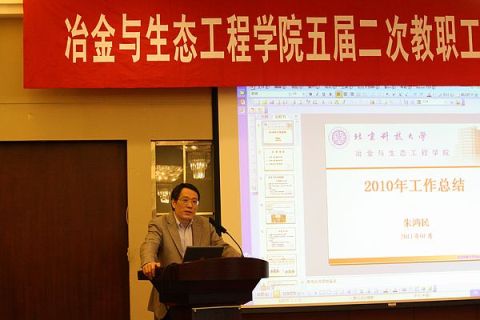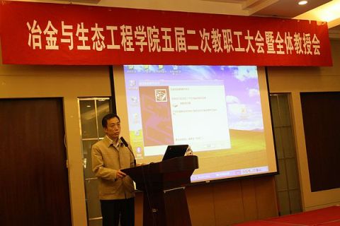 2011年4月23日下午,世界足球官网五届二次教职工大会暨全体教授会在九华山庄成功召开。大会由冶金与生态工程公司党委书记宋波主持进行,公司党委副书记张文明,世界足球官网经理朱鸿民,副经理王福明、张建良、耿小红,院工会主席王新东教授,以及全院共一百余名教职工参加了此次大会。