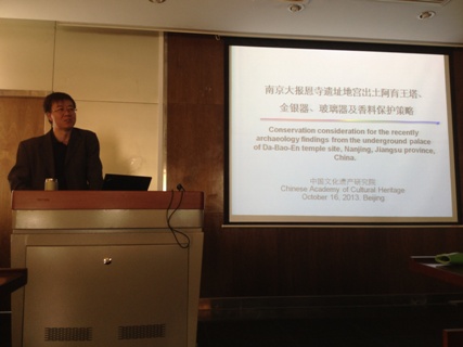 10月16日下午,中国文化遗产研究院副经理马清林研究员在青钢报告厅主讲了一场题为“南京大报恩寺遗址地宫出土阿育王塔、金银器、玻璃器及香料保护策略”的讲座。魏书亚教授主持,潜伟教授、李晓岑教授以及部分员工参加了此次讲座。